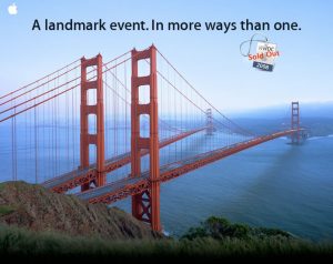 This year however, WWDC is expanding to address the new iPhone mobile WiFi platform, an new expansion Apple illustrated in WWDC marketing with a photoshopped doubling of San Francisco’s landmark Golden Gate Bridge.